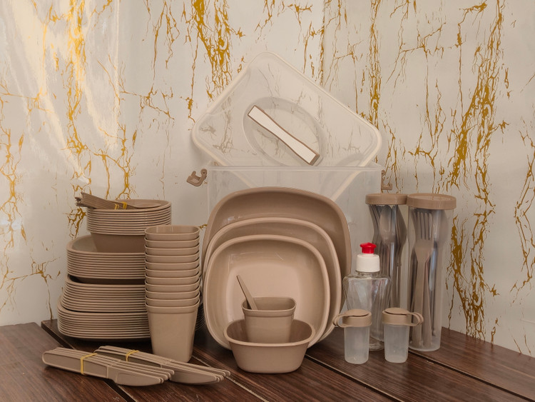 سرویس غذاخوری مسافرتی ۱۲ نفره کامل با باکس حمل؛ همراه ایدهآل برای سفرهای خانوادگی، کمپینگ، پیکنیکهای بزرگ و دورهمیهای طبیعتگردی که میخواهید بدون نگرانی از شکستن یا گم شدن وسایل، مثل خانه غذا بخورید!