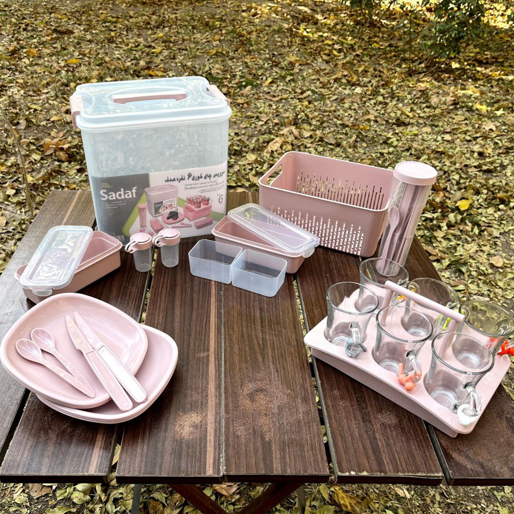 سرویس چایخوری و صبحانه خوری مسافرتی ۶ نفره ۳۴ پارچه؛ انتخاب عالی برای کسانی که عاشق لحظات آرام و دلنشین چای و صبحانه در دل طبیعت، پارک یا سفرهای جادهای هستند