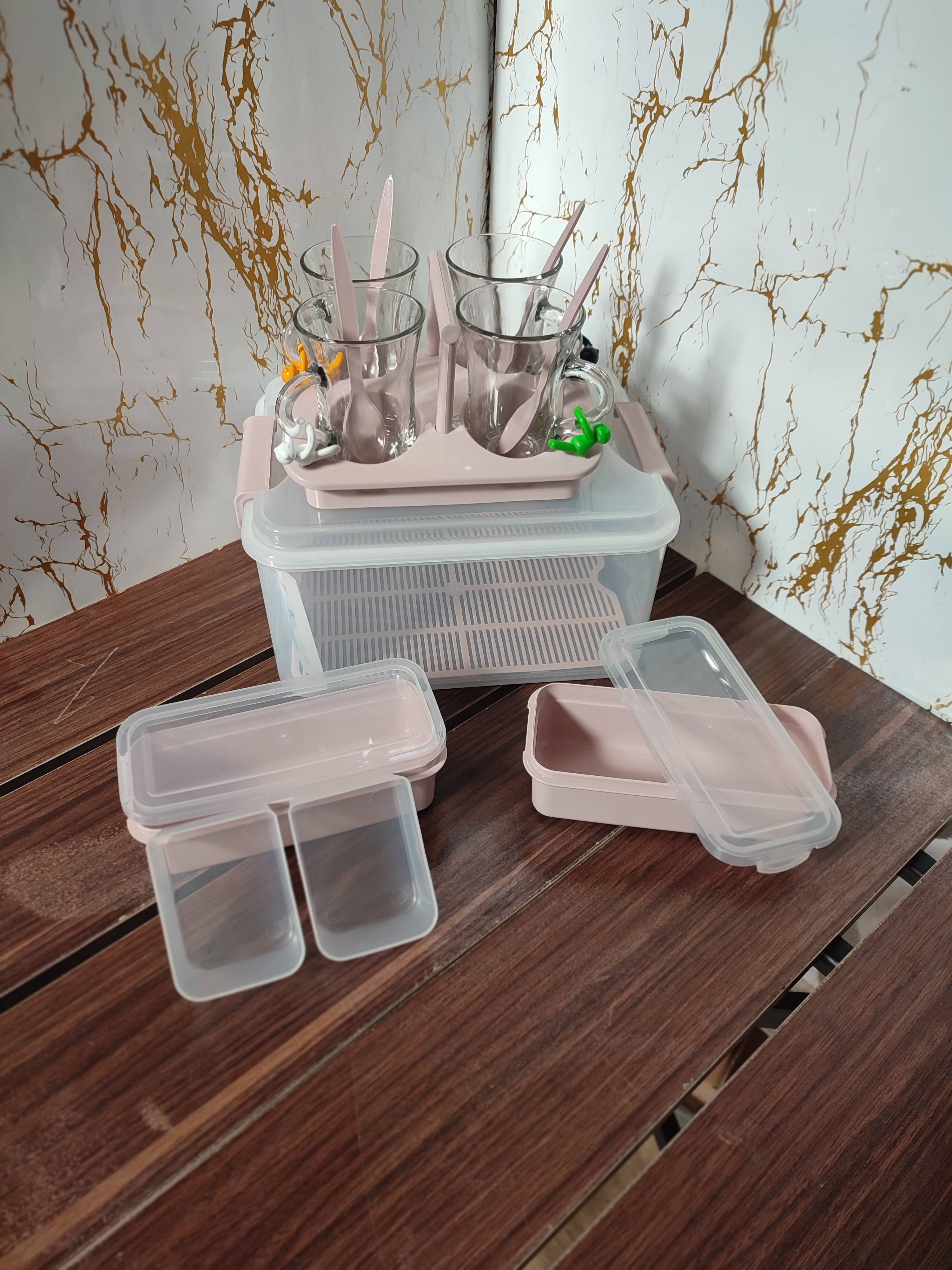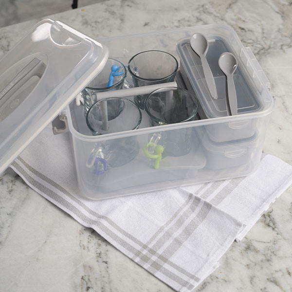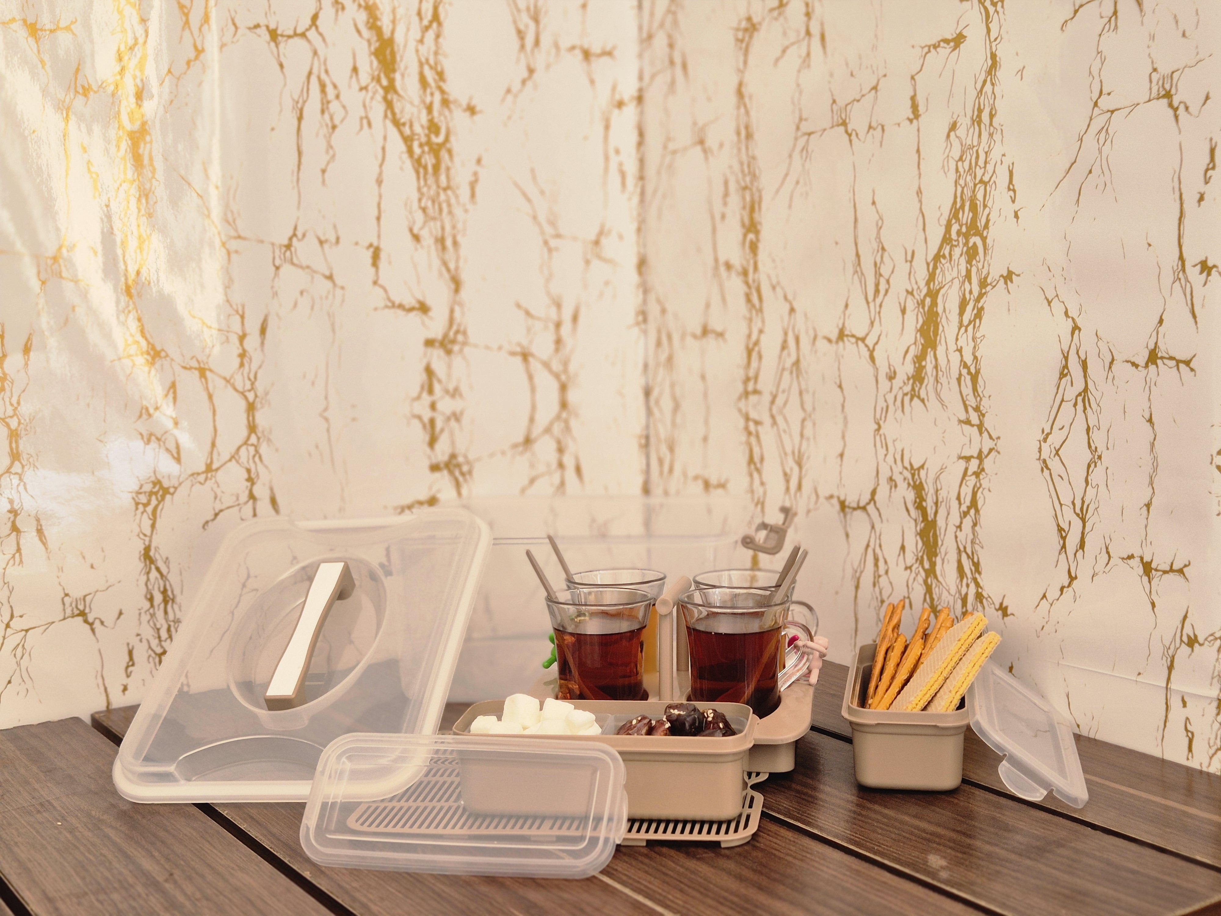 این ست با باکس دربدار مقاوم و کمحجم طراحی شده که تمام قطعات را منظم و ایمن داخل خود نگه میدارد – درب قفلشونده از ورود گردوغبار جلوگیری میکند و حمل آن در کوله کوچک، سبد پیکنیک یا صندوق ماشین بسیار راحت است. کف باکس دارای سبد جداگانه برای نظم بیشتر و جلوگیری از برخورد لیوانها.
